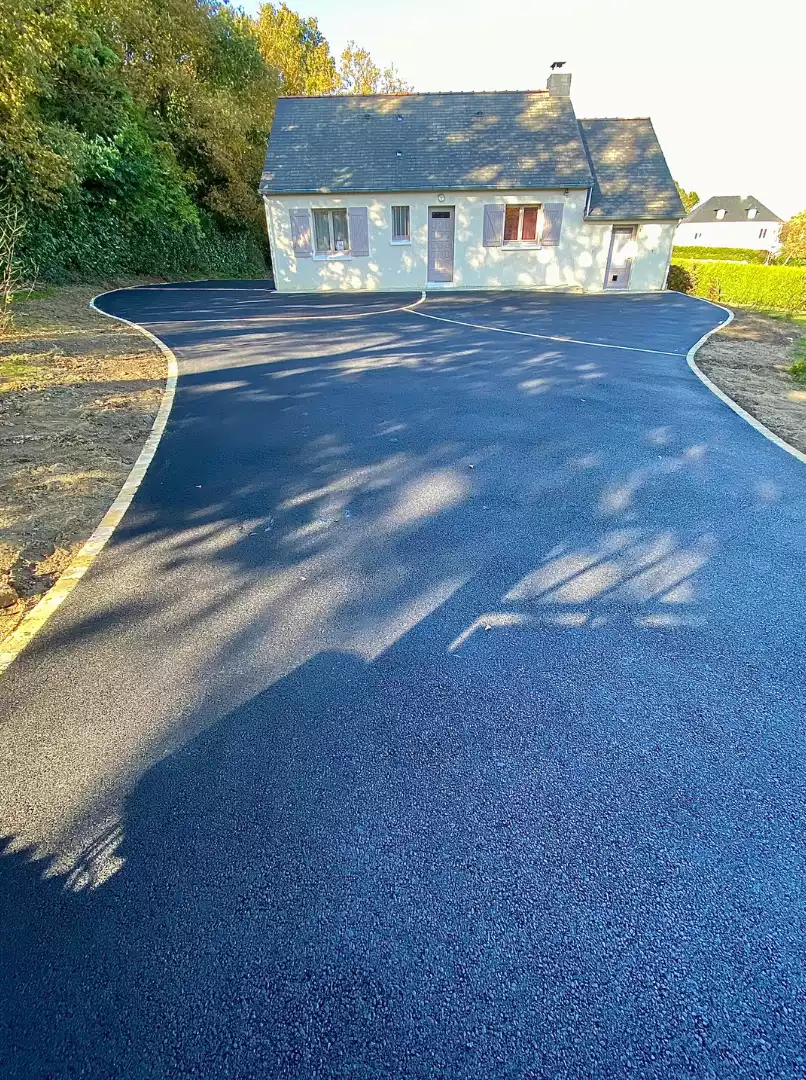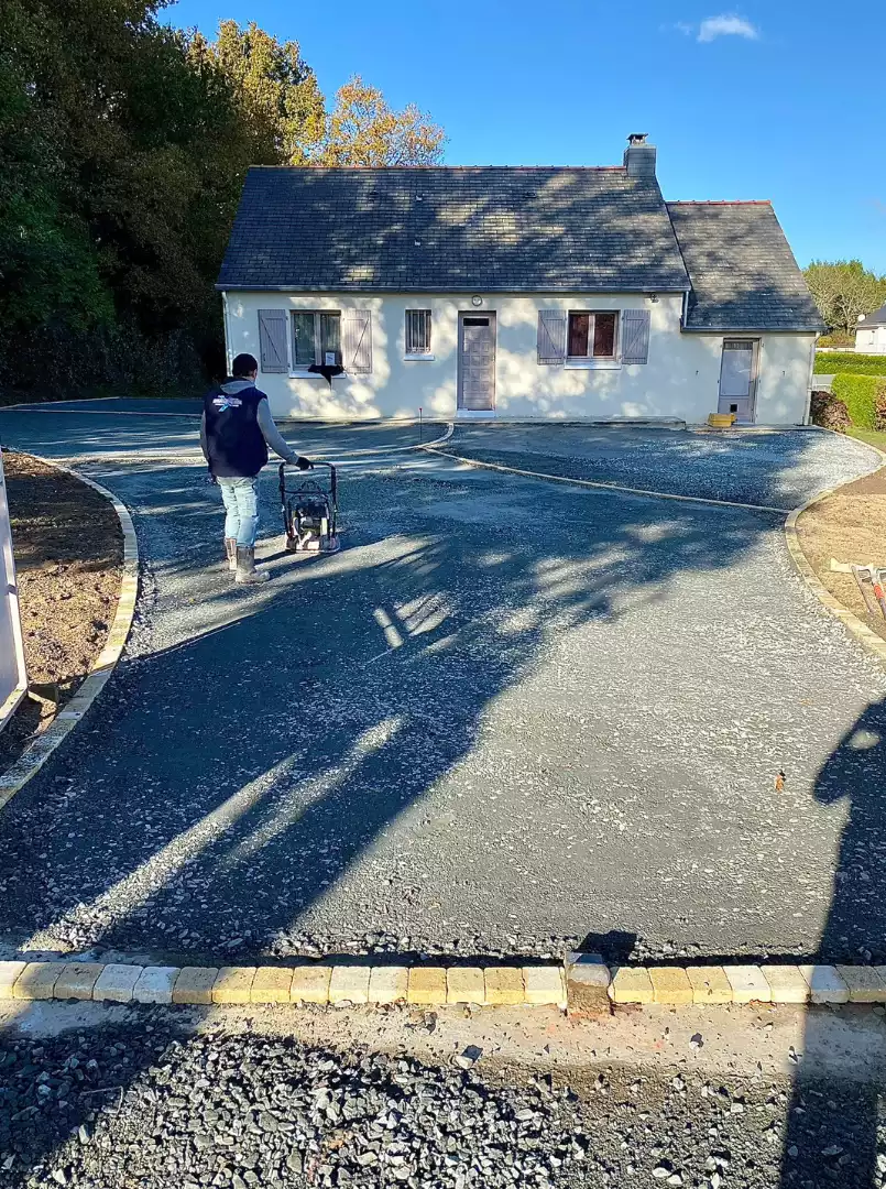 Réalisation d’un accès en enrobé avec une allée en pavés et création d’un massif avec des paillettes d’ardoise